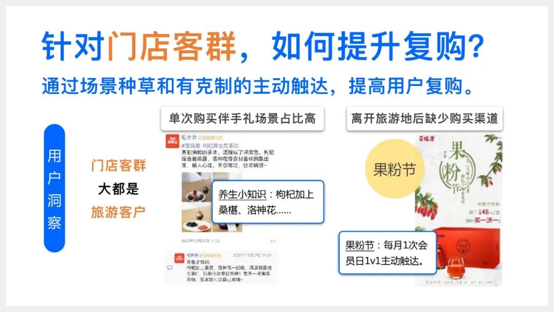 这些购买过百瑞源产品的客户在离开宁夏后,虽然继续有着“送礼可选百瑞源枸杞”的认知,却因为少了“提醒机缘”,再需要送礼时也不太能想起来再到百瑞源买枸杞。