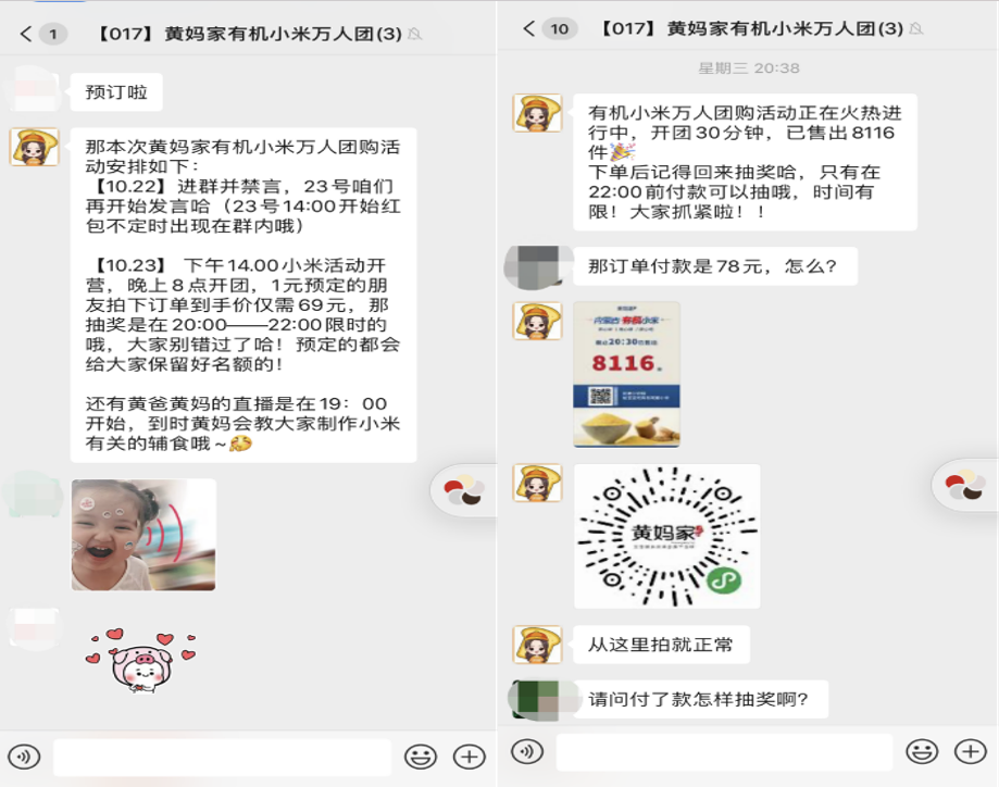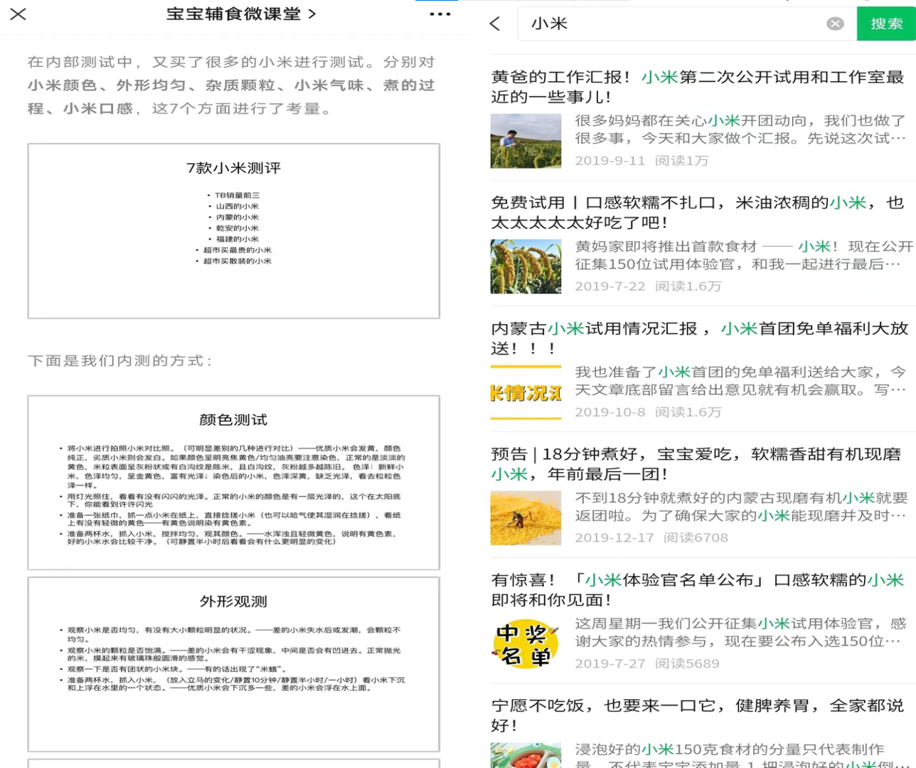 母婴类自媒体宝宝辅食微课堂做了一个体验式上新的“万人团购小米”活动,两天内就卖了1.3万多份,销售额超93万元,非常成功。