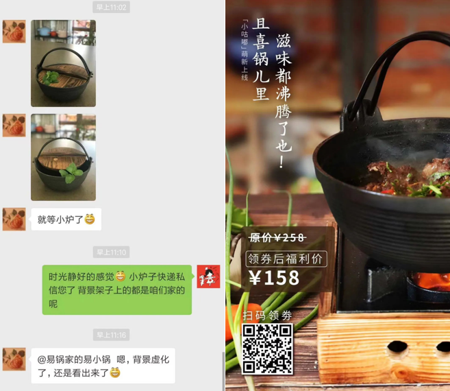 比如你深入参与了前期的体验活动,在信任的基础上还会产生共创的情感,于是忍不住向闺蜜推荐这款锅,两个人的信任度本来就高,刚好又有立减活动,那么闺蜜转化下单的概率必然非常高。
