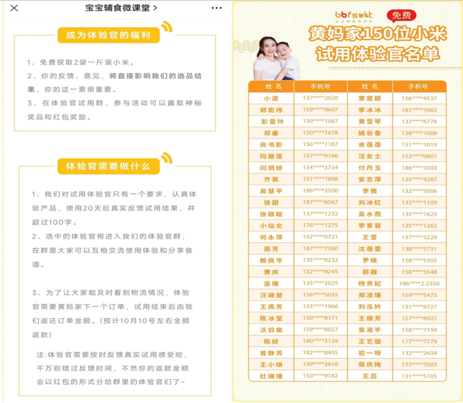 一是通过招募体验官输出反馈。它推出150个体验官名额,每人免费送两袋一斤装的小米,需要在使用20天内反馈超100字的试用结果。体验官名单也在官方渠道发布,显得更加正式。