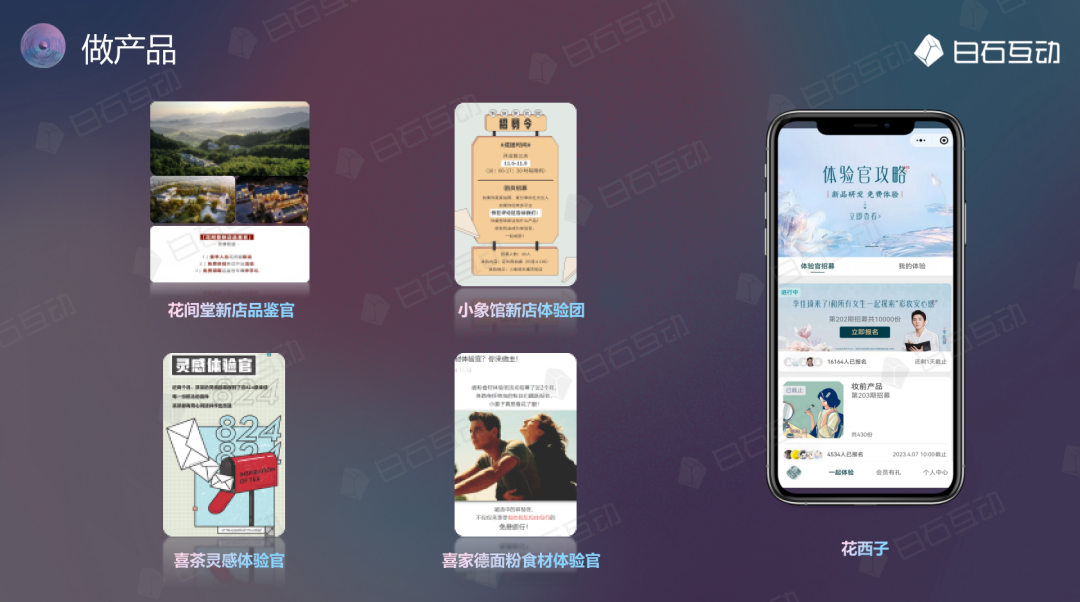此外,我们熟知的喜茶、小象馆、喜家德面粉、花西子等品牌也都在私域运营中采用了邀请会员体验新品,以口碑带动新客户的“体验式上新”。