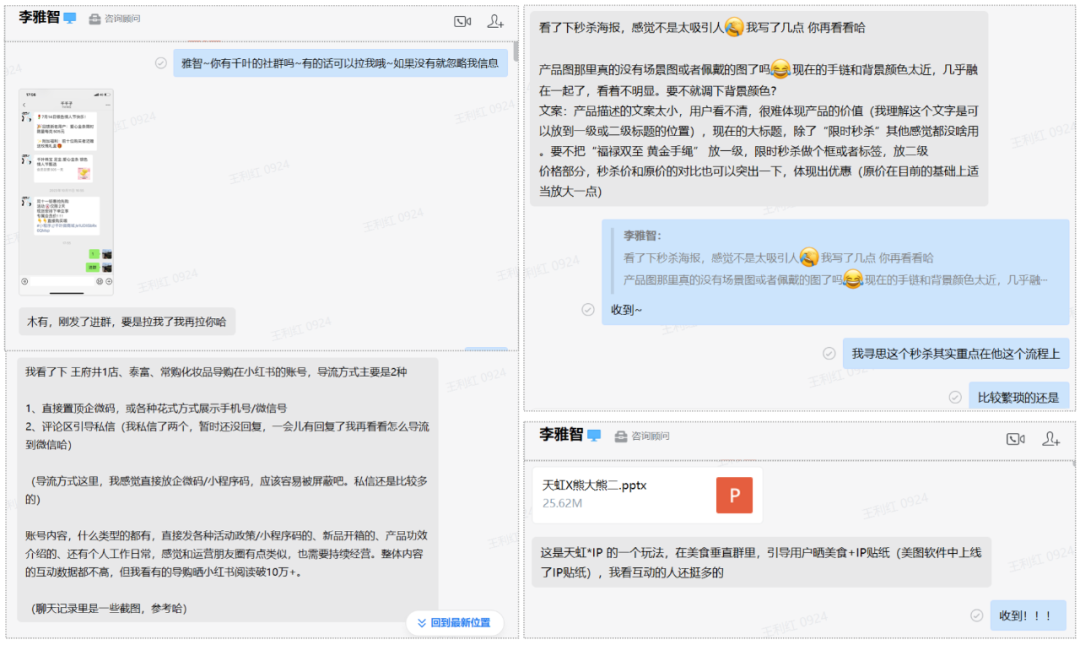 利红:很多,一一感谢我就不在文章里吹捧了哈哈哈。点名的话我想还是雅智,这是一个非常靠谱贴心的伙伴,作为研究员,她的日常积累储备真的很多,一般我遇到想了解的新品牌、新玩法、新案例,偷懒一点的方法就是去问她。雅智会毫无保留的跟我分享她的观察研究和思考,而且还会附上详尽的截图,真诚、温暖的实力派队友。